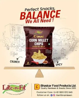 Lite-n-Fit Omni Corn Millet Chips 180gms quantity